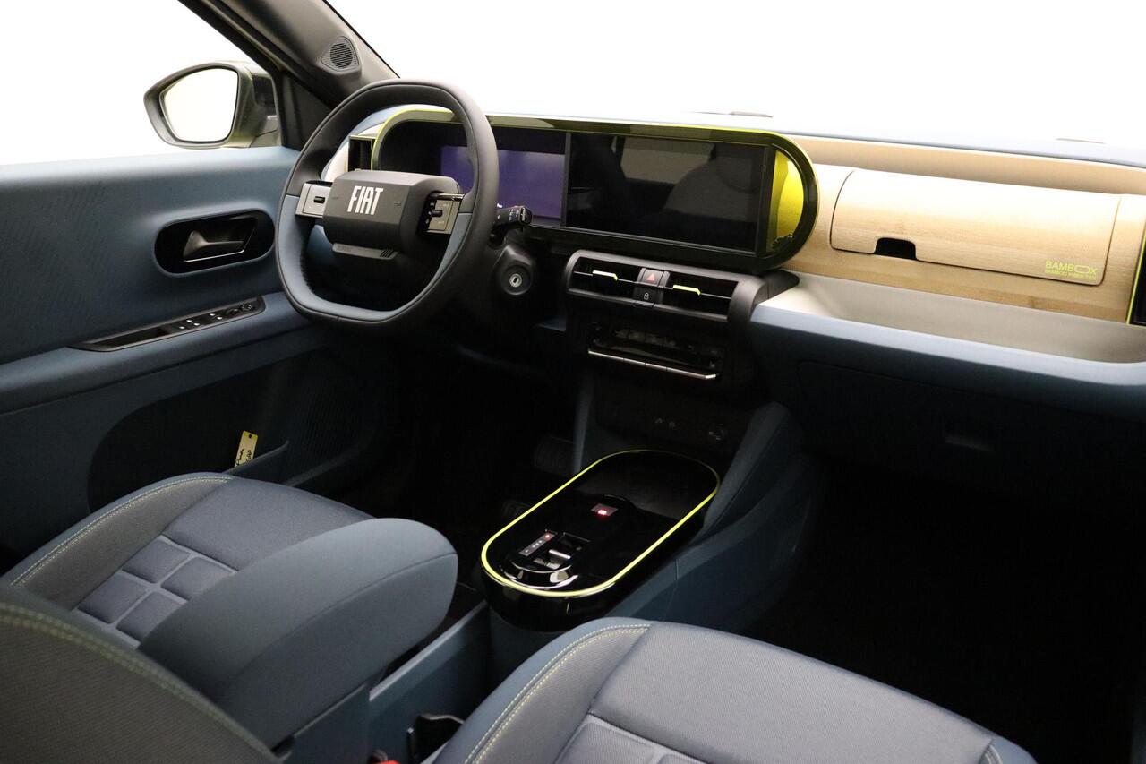 zodat het opladen in zo kort mogelijke tijd gebeurt. Het rijbereik van deze auto is groot genoeg om er de meest voorkomende dagelijkse ritten mee te maken. Deze Fiat Grande Panda legt bestuurder én bijrijder compleet in de watten met de verwarmbare voorstoelen. Het verwarmbare stuurwiel is een teken van ultieme luxe. Deze voorziening is een topklasse auto waardig. Bij de zeer complete uitrusting van deze auto behoren ook 17 inch lichtmetalen velgen