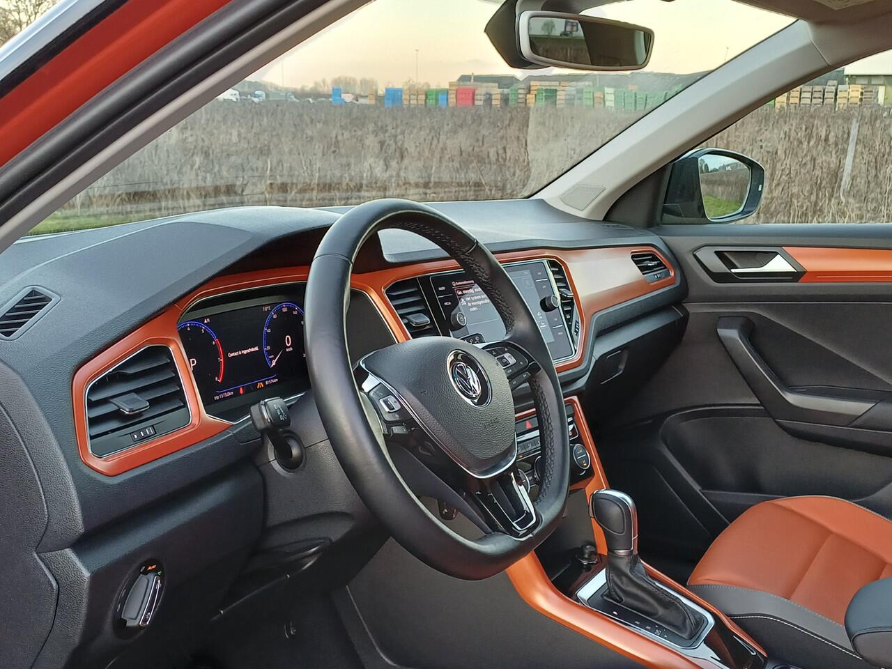 zoals aan deze T-Roc duidelijk te zien is. De krachtige benzinemotor van deze auto is gekoppeld aan een automatische transmissie. Niet alleen de stoelen