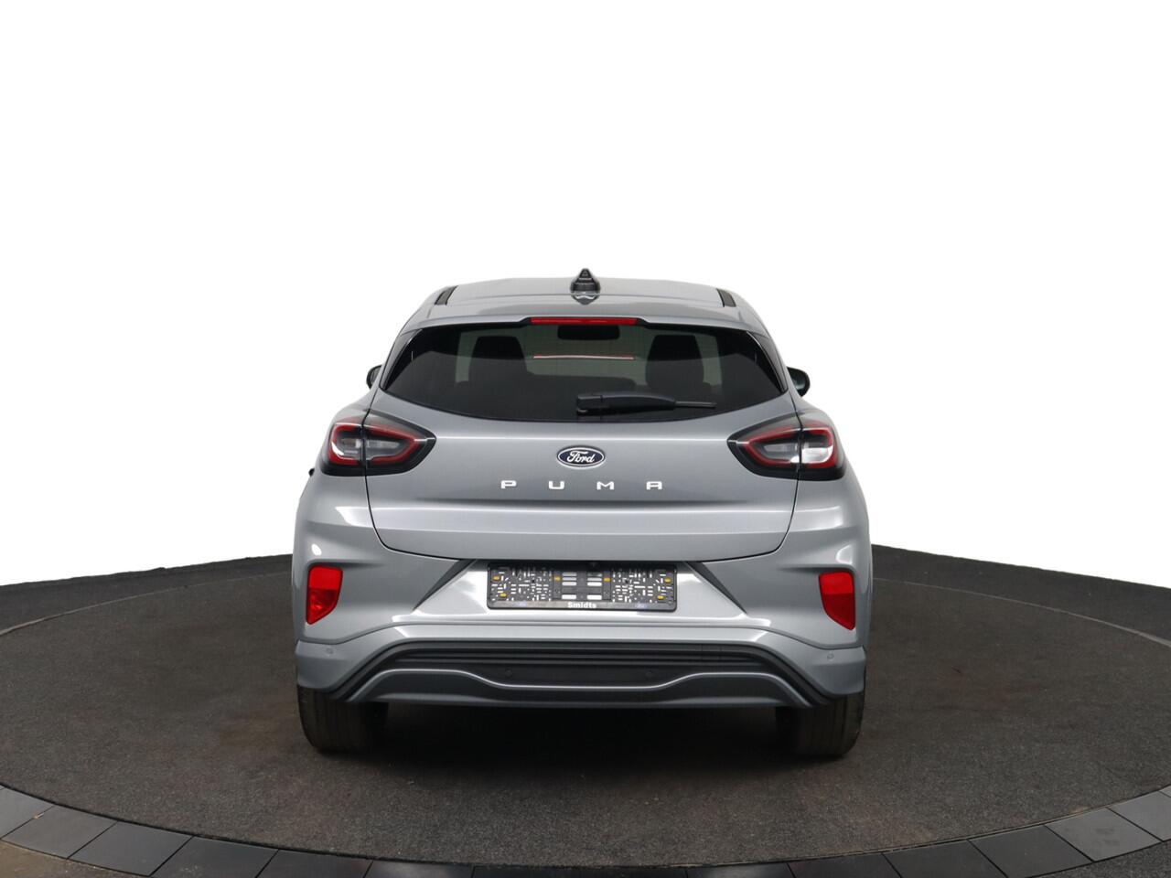 deze Ford Puma levert sportieve prestaties en onafgebroken rijplezier. Een handige voorziening op deze auto is de elektrische achterklep die u op afstand kunt openen. Comfortabel houvast krijgt u van het verwarmd stuurwiel. De koplampen zijn voorzien van matrix LED-verlichting waarmee u aanzienlijk verder kan kijken in het donker. Het systeem past zelf de lichtstraal aan op het moment tegenliggers verblind kunnen worden. Bij de uitrusting van deze Ford horen onder meer 18 inch lichtmetalen velgen