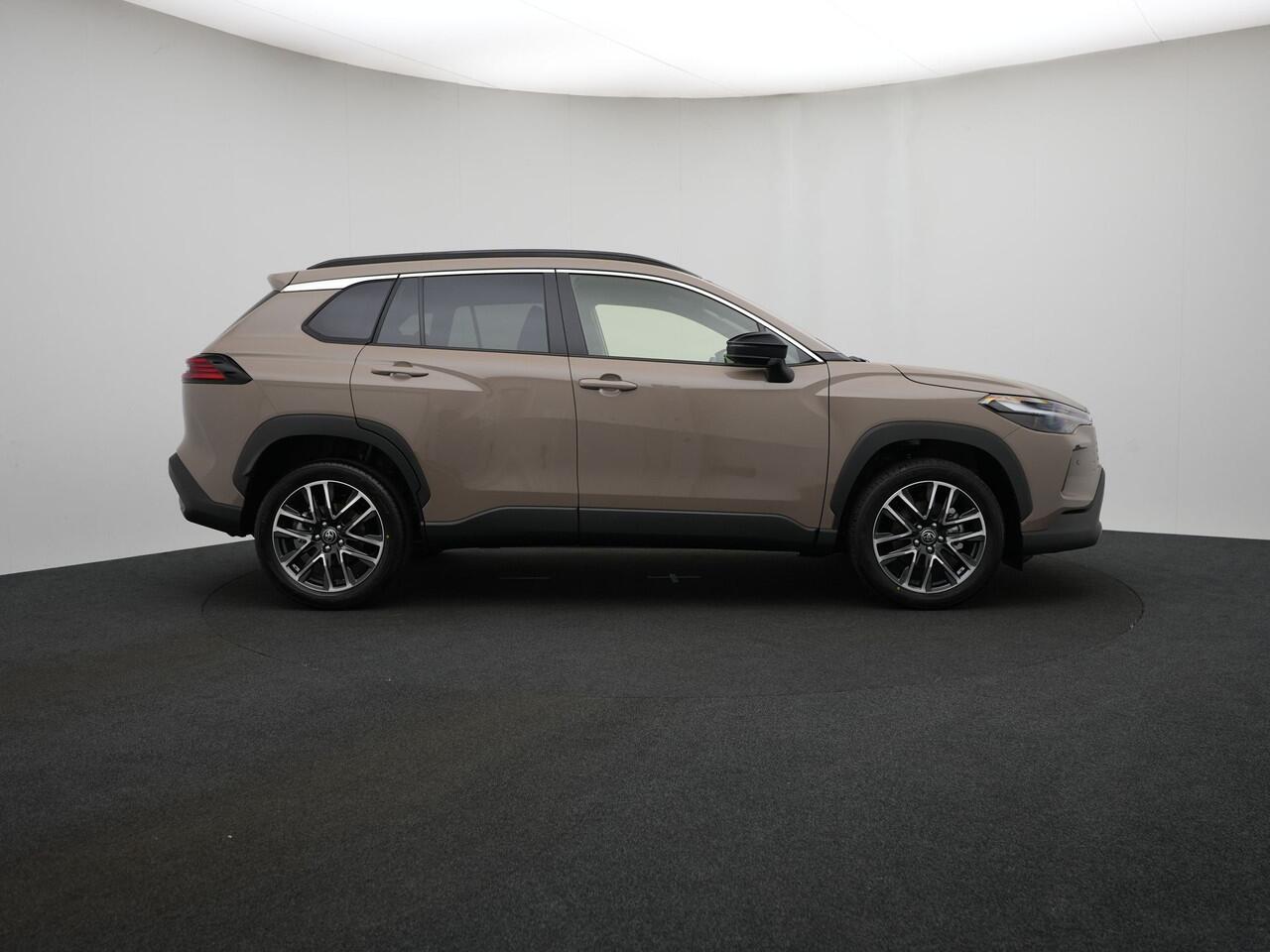 deze splinternieuwe auto is nu direct beschikbaar Deze Toyota Corolla Cross heeft in feite twee motoren: een voor benzine en een elektronische. Deze hybride oplossing biedt het beste van beide! Koude start? Niet met de verwarmbare voorstoelen! Een handige voorziening op deze auto is de elektrische achterklep die je op afstand kunt openen. Bij de uitrusting van deze auto horen onder meer 18 inch lichtmetalen velgen
