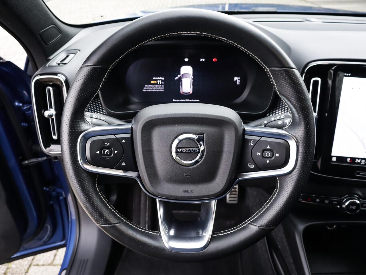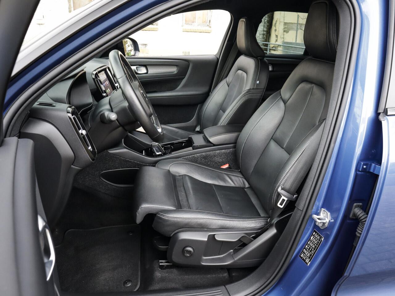 geen emissies en probleemloze techniek. Met de Volvo XC40 haalt u een elektrische auto van topklasse in huis. U hoort slechts het lichte gezoem van de elektromotor tijdens het rijden. Een krachtige motor geeft deze auto zijn sportieve prestaties. Ze zeggen weleens dat stijlvol en handig niet gauw samengaan. In dit geval wel: kijk maar naar het lederen interieur en de elektrisch bedienbare achterklep. Donkere en koude maanden? U zit altijd goed dankzij de stoelverwarming. Ook 19 inch lichtmetalen velgen