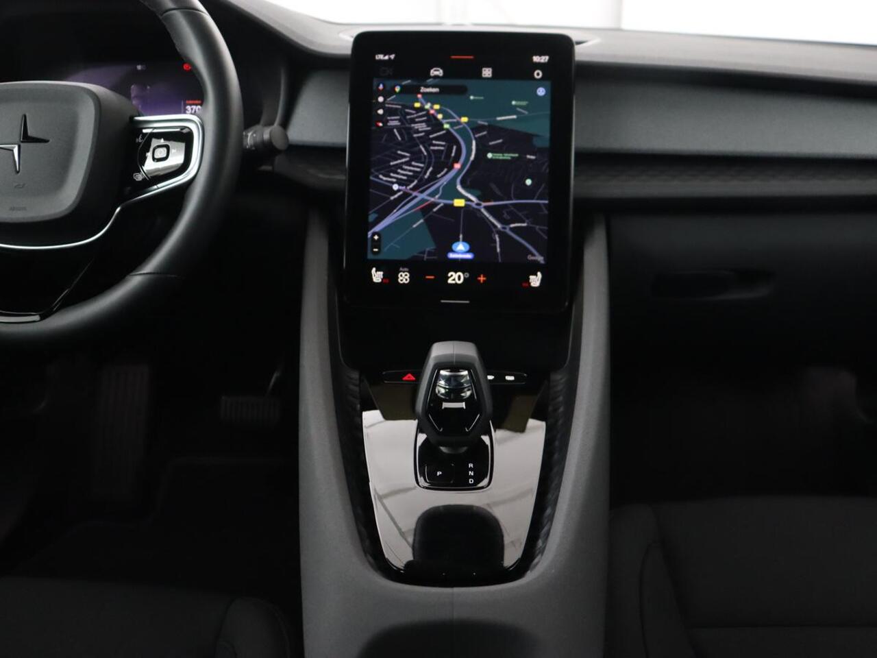 24/7 via de app. Deze Polestar is voorzien van knoppen op het stuur om het audio-installatiesysteem met dab-ontvangst te bedienen. Radarsensoren aan de achterkant van de auto zorgen voor een achteropkomend verkeer waarschuwing als de afstand tot het verkeer achter te klein wordt. De automatische airconditioning zorgt onder alle omstandigheden voor een prettige temperatuur. De uitrusting van deze auto is met parkeersensoren achter