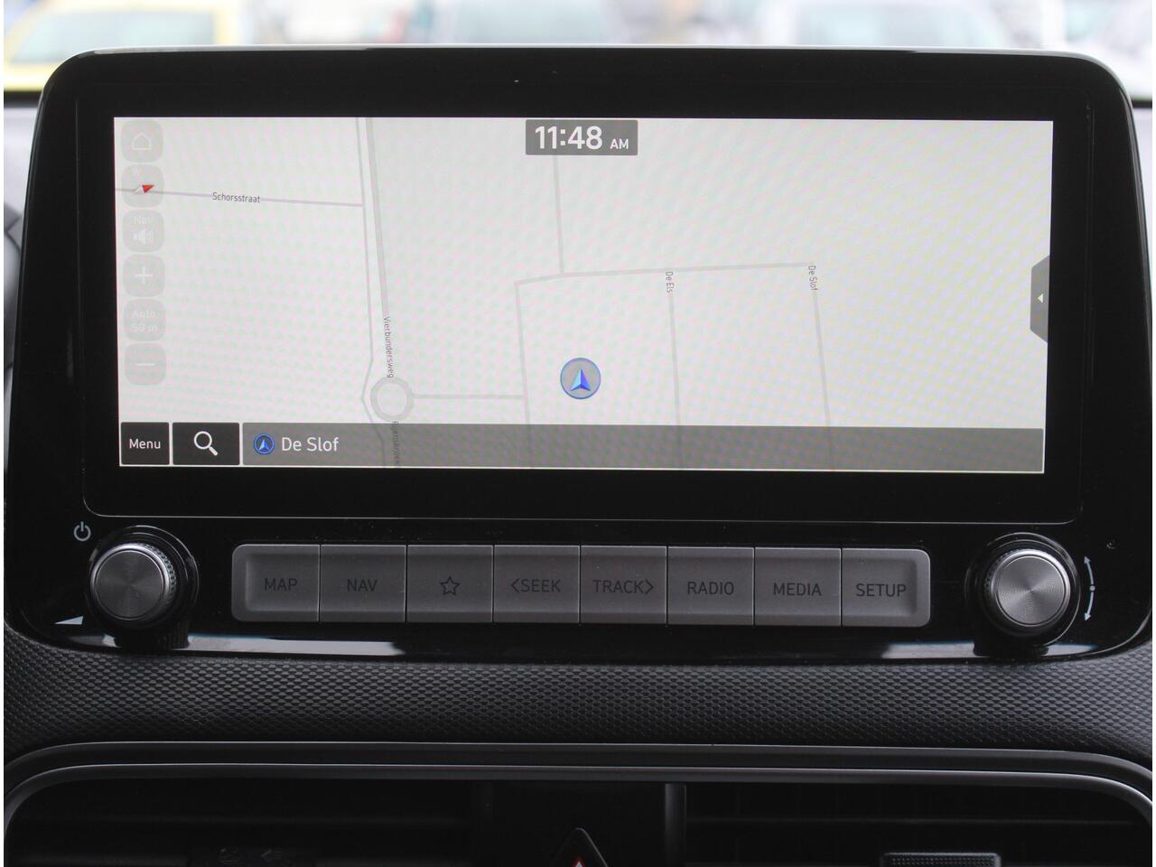 De nieuwste veiligheidssystemen komen in deze Hyundai Kona samen. Het Lane-keeping systeem let constant op en waarschuwt of corrigeert als u onoplettend over de lijnen van de rijstrook gaat. Het systeem van forward collision warning