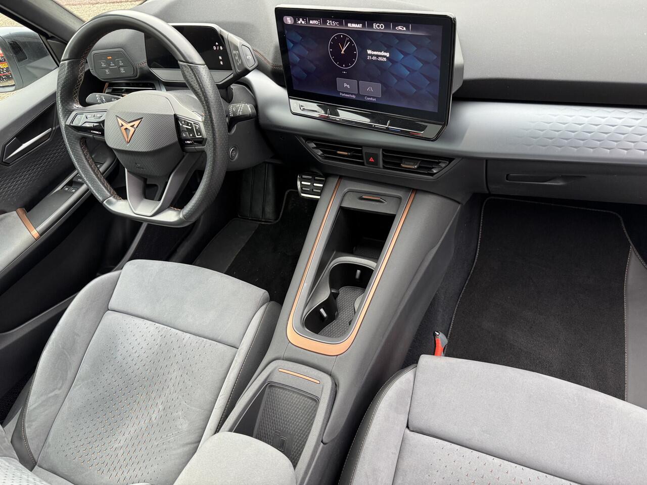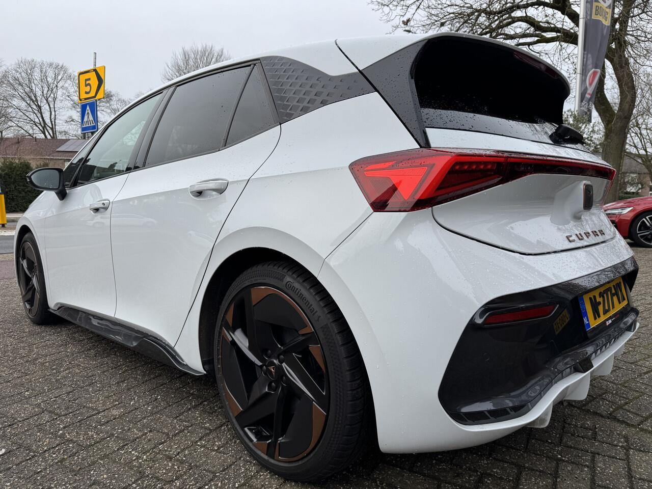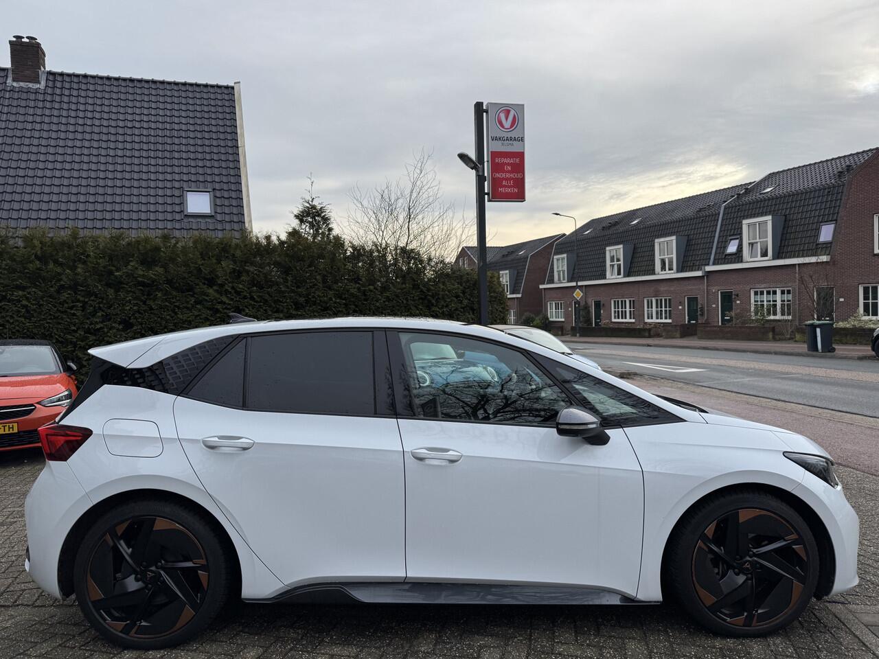 stilte en nul procent uitlaatgas krijgt u met de elektromotor. De krachtige motor geeft deze CUPRA uitstekende prestaties. Deze CUPRA Born legt bestuurder én bijrijder compleet in de watten. De verwarmbare voorstoelen zijn voorzien van massagefunctie. De sportstoelen geven het interieur een super strakke look. Geniet van het uitzicht naar buiten door het riante glazen panoramadak. Tot de uitrusting van deze CUPRA behoren ook 20 inch lichtmetalen velgen