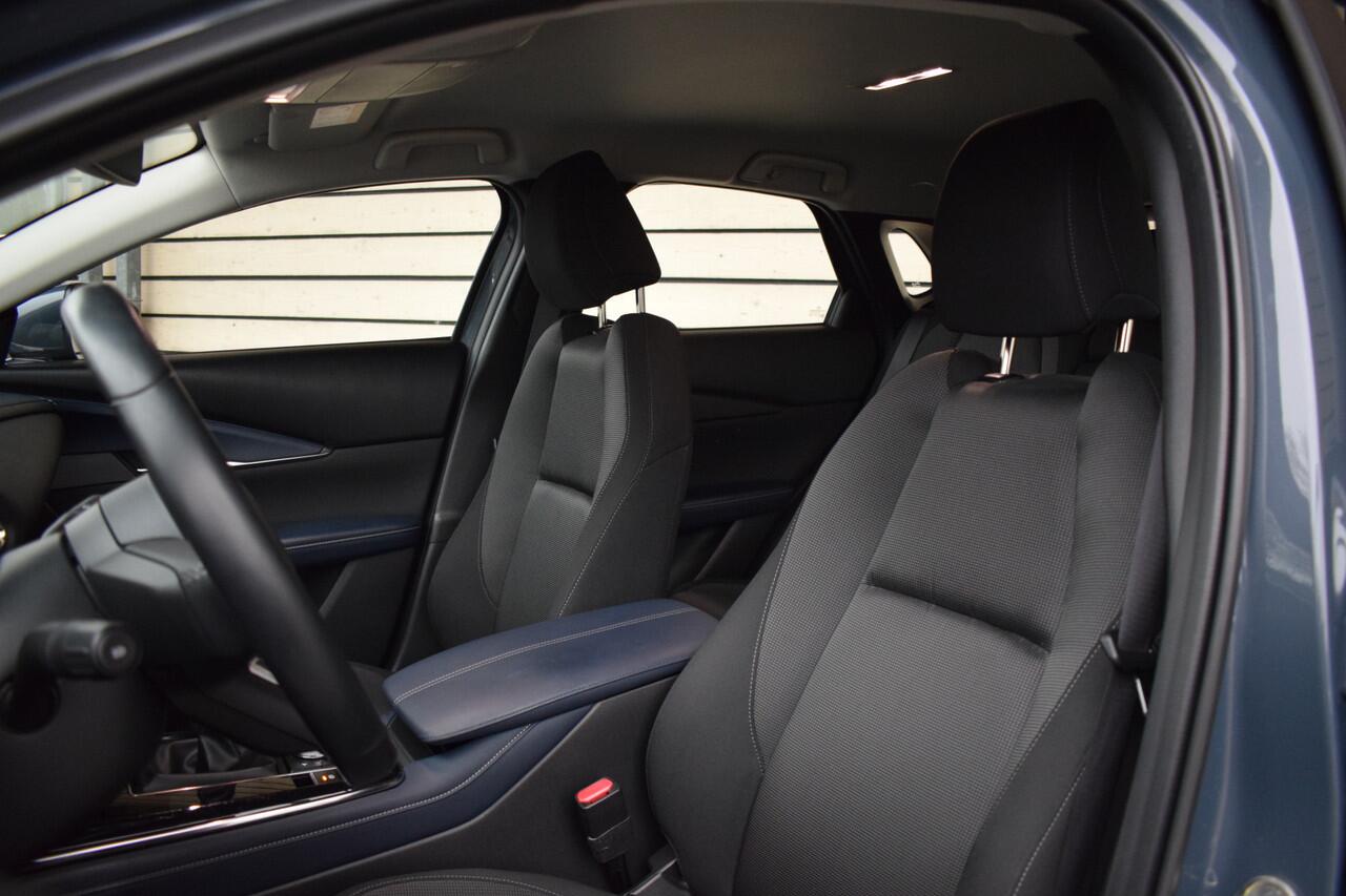 De nieuwste veiligheidssystemen komen in deze Mazda CX-30 samen. Bij de veiligheidssystemen van deze Mazda hoort ook de verkeersbord-detectie. Die leest tijdens het rijden als het ware met u mee en attendeert u op de significante verkeersborden langs en boven de weg. Het Lane-keeping systeem garandeert dat u zich niet onverhoeds buiten de lijnen van de rijstrook begeeft. De forward collision warning reduceert het gevaar van een botsing met een voorligger significant. U bent mede dankzij head-up display