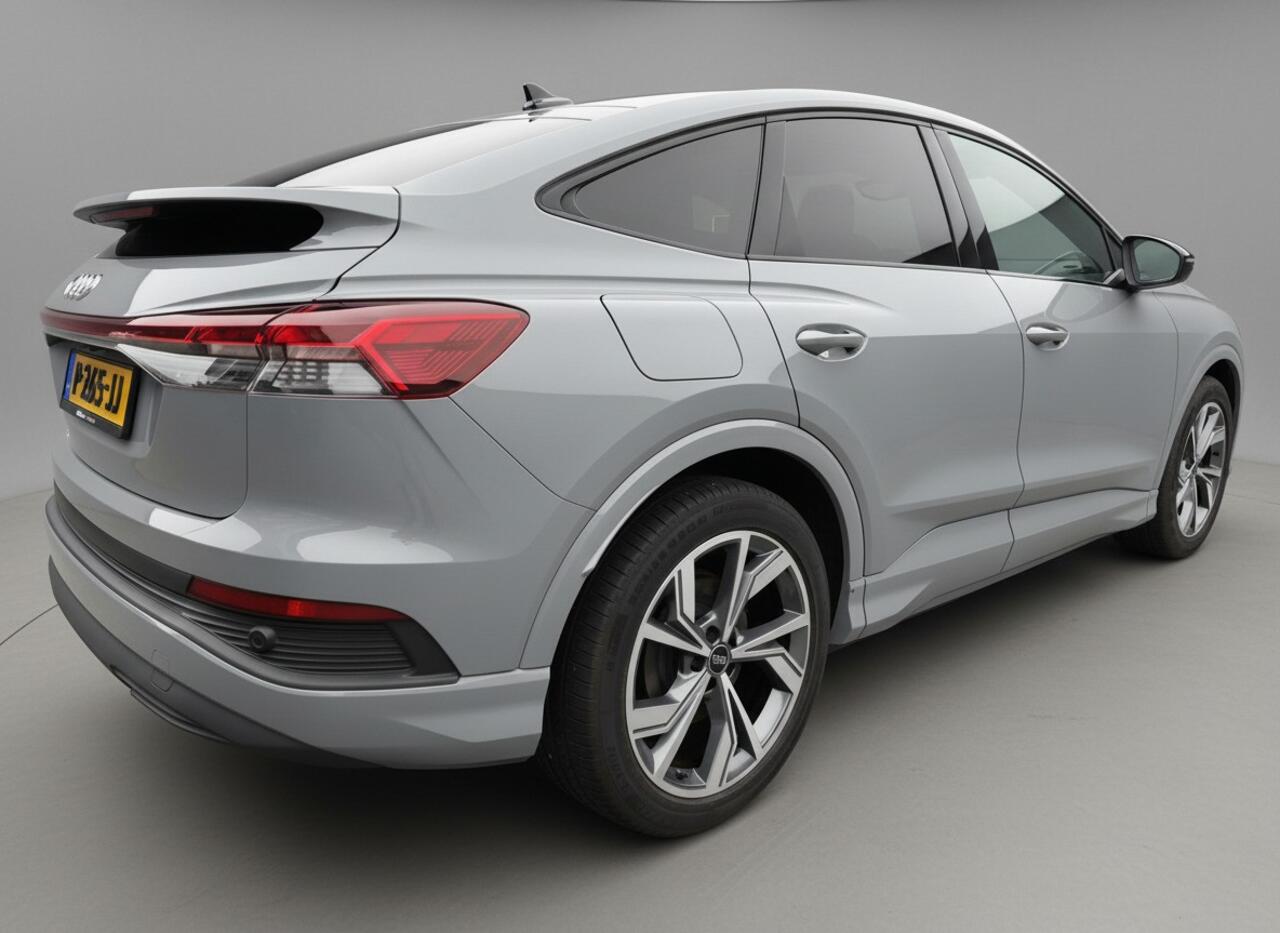 Voor een goed en duidelijk overzicht onderweg is het digitale dashboard uitermate slim ingedeeld. Parkeer en kijk niet om! De achteruitrijcamera doet dat voor u. Adaptive cruise control is een comfortabele en veilige optie. Het systeem reguleert de snelheid en houdt automatisch afstand tot uw voorligger. Deze Audi Q4 Sportback e-tron is 'connected'. Belangrijke functies worden permanent gemeten en zijn uit te lezen via een speciale app