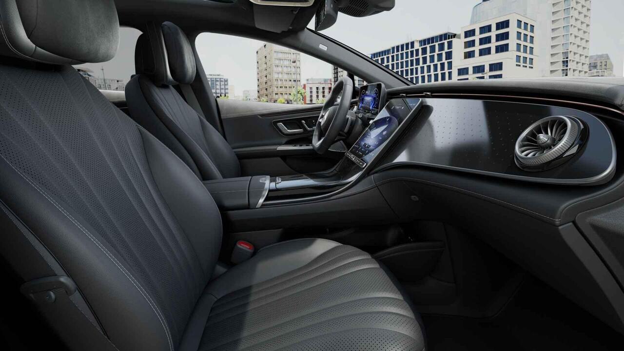 lederen bekleding. Een weldaad voor u en uw bijrijder: deze Mercedes-Benz EQE heeft verwarmbare voorstoelen. Ontspannen rijden in een optimale zithouding: daarvoor zorgen de comfortstoelen. Als u blij wordt van licht en ruimte dan zult u zeker genieten van het elektrisch bediende panoramadak. Een praktische extra is de elektrisch bedienbare achterklep die opent en sluit met een druk op de knop. Natuurlijk kunt u zonder. Maar waarom? Lekker toch