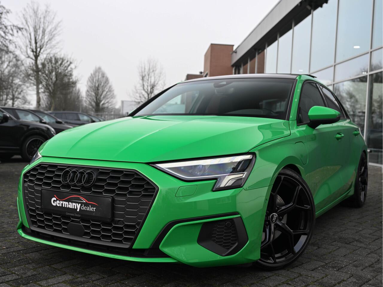 Unieke Audi A3 Sportback in de fantastische individual kleur Vipergreen (origineel af fabriek)! Afgebeelde hoogglans zwarte 19-inch is een velgenvoorbeeld en zijn tegen scherpe meerprijs leverbaar. De originele Audi wielen af fabriek zijn 17 inch lichtmetaal. Deze zijn bij de prijs inbegrepen. Mocht de door ons gekozen 19-inch niet in de smaak vallen dan bent u natuurlijk vrij om zelf een model ui te zoeken naar uw smaak!