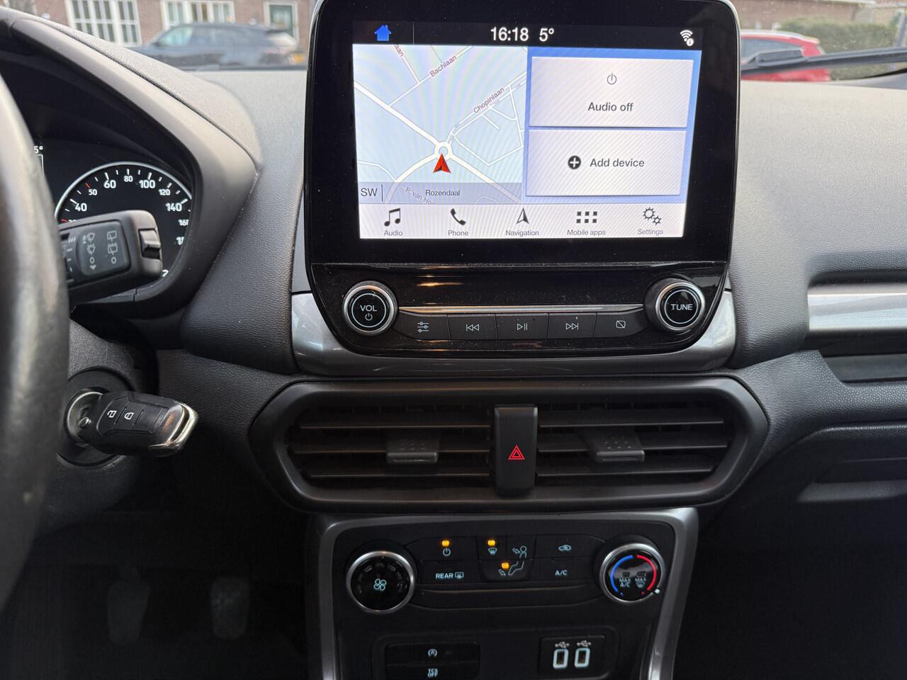 Dankzij de spraaksturing bedient u verschillende functies zonder uw handen van het stuur te halen. Deze Ford EcoSport is voorzien van remote services. Via uw smartphone bedient u diverse functies ook op afstand en krijgt u informatie over de status van uw auto. Prettig