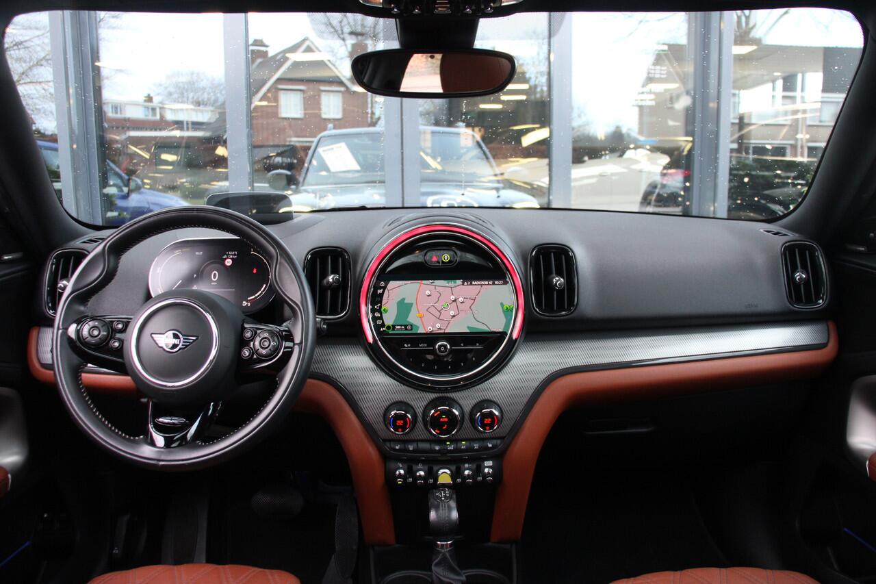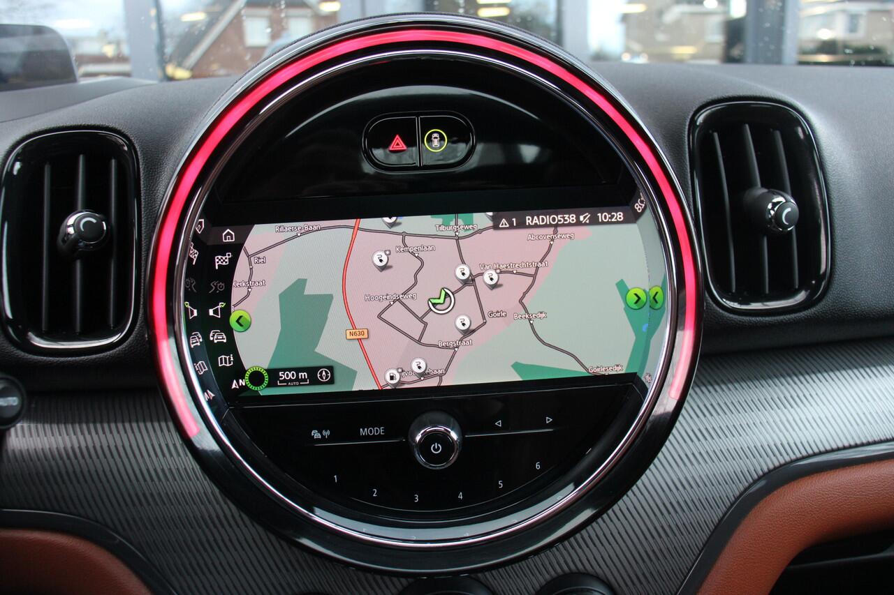 schoner rijden en zo nodig over op benzine. De ideale combi! Zon en frisse lucht krijgen vrij spel dankzij het elektrisch bediende glazen panorama dak; de elektrisch bedienbare achterklep maakt het u gemakkelijk en u voelt zich omgeven door luxe van het lederen interieur! De R in de maand? Dan is het tijd voor de luxe van de meegeleverde stoelverwarming! Afzien is er bij deze MINI Countryman niet bij. Zelfs achterin vinden we de verwarmde achterbank. Dankzij de xenonverlichting profiteert u in het donker van een krachtige en heldere lichtbundel. Tot de uitrusting van deze MINI behoren ook 19 inch lichtmetalen velgen
