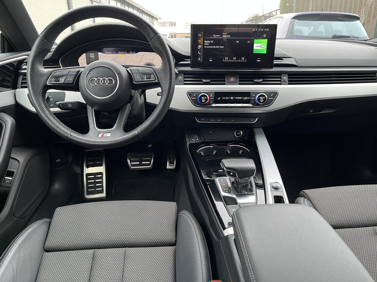 Over het digitale dashboard is goed nagedacht. Alle belangrijke functies binnen en buiten in één oogopslag. Hoeveel ruimte heeft u nog bij het inparkeren? De achteruitrijcamera brengt helder in beeld wat zich achter de auto bevindt en geeft een geluidssignaal. In deze A5 Sportback vind jij niet alleen schakelaars op het stuur om het MMI navigatiesysteem te bedienen en het audio-installatiesysteem met DAB-ontvangst