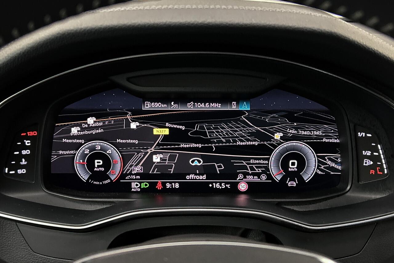 Dankzij het digitale dashboard in deze auto kan u de interface van uw cockpit personaliseren. Het gebruik van de 360 graden camera op deze auto helpt u bij het navigeren door lastige rijbanen en het drukke stadsverkeer. Met adaptive cruise control houdt deze auto automatisch afstand tot uw voorligger. In één oogopslag weet u de complete systeemstatus van deze auto. Dankzij Connected Services. U kunt het audio-installatiesysteem en het full map navigatiesysteem bedienen met de knoppen op het stuur. Ook is de Audi uitgerust met: automatische airconditioning