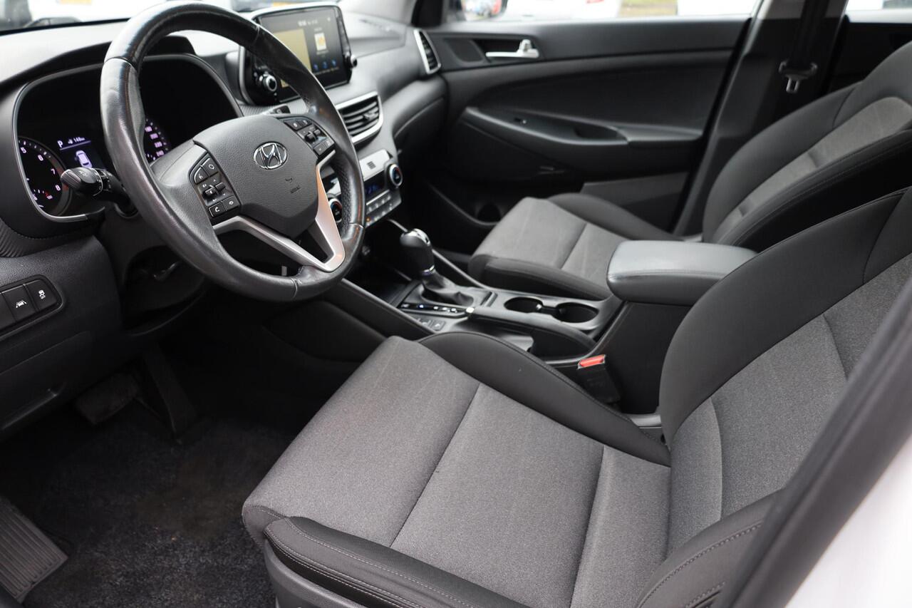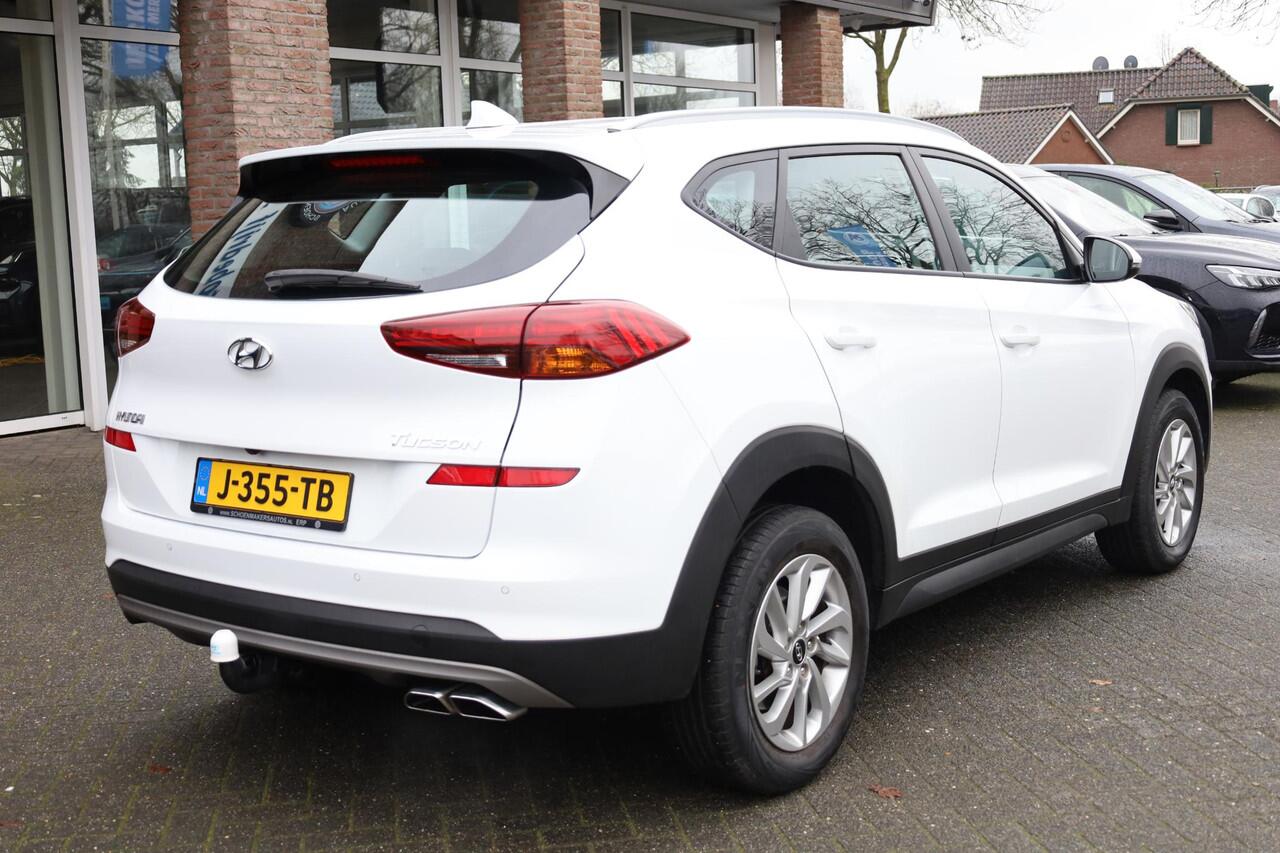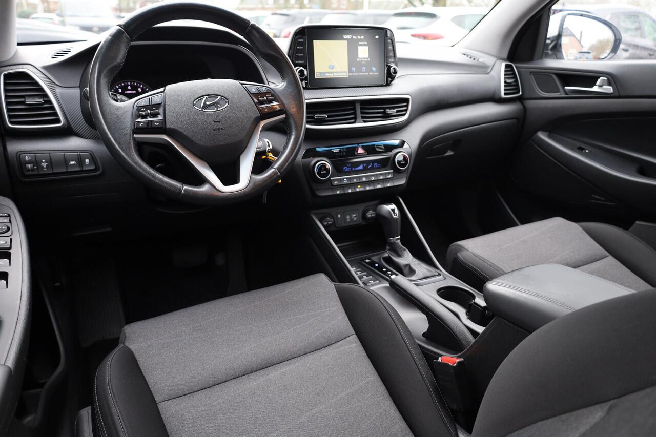 met de achteruitrijcamera. Adaptive cruise control is een comfortabele en veilige optie. Het systeem reguleert de snelheid en houdt automatisch afstand tot uw voorligger. De auto is voorzien van een trekhaak en is een uitstekende caravantrekker. Er is geen bestemming die het aanwezige full map navigatiesysteem niet kent. Dat rijdt lekker! Aan boord van deze Hyundai Tucson is een achteropkomend verkeer waarschuwing voor extra veiligheid. Extra opties op deze auto zijn: automatische airconditioning