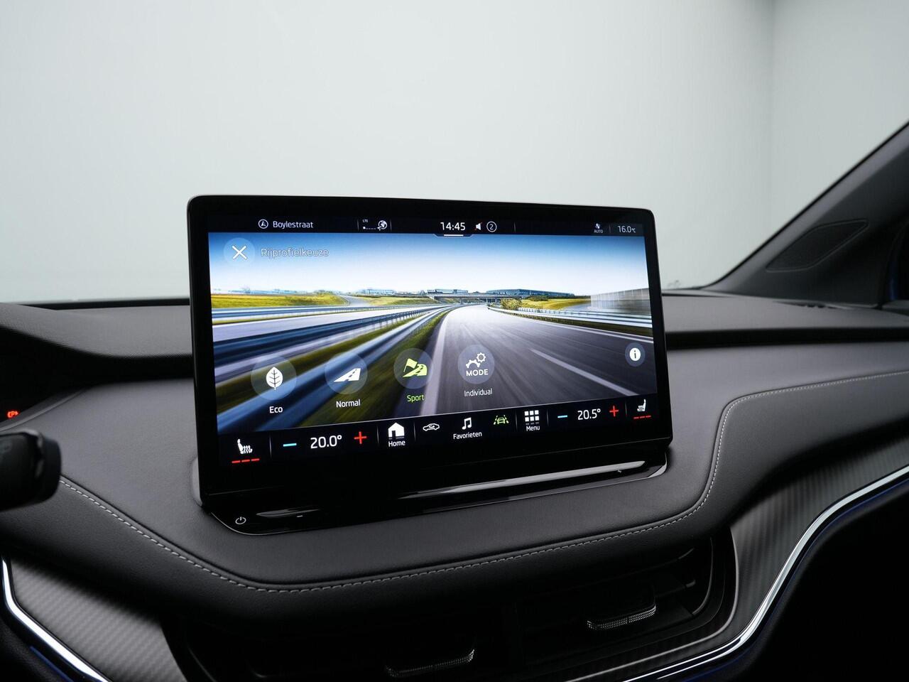 Het grote 13 inch infotainmentscherm met geïntegreerd navigatiesysteem vormt het digitale hart van het interieur. Matrix LED koplampen en LED achterlichten met dynamische knipperlichten zorgen niet alleen voor uitstekend zicht