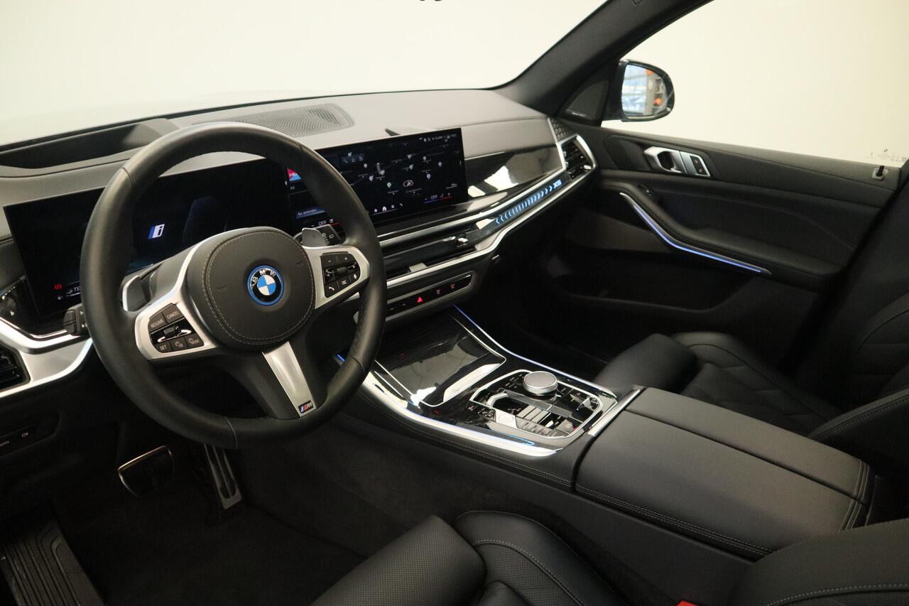 door de combinatie van een verbrandingsmotor en een elektromotor. Het lederen interieur geeft een puur luxegevoel. En ook aan optimaal gemak is gedacht: een elektrisch bediende glazen panorama dak en de elektrisch bedienbare achterklep. Is dat niet compleet? Deze BMW X5 legt bestuurder én bijrijder compleet in de watten met de verwarmbare voorstoelen. Zijwaartse g-krachten worden solide opgevangen door de sportstoelen. Automatische luchtvering absorbeert oneffenheden in het wegdek en vergroot het rijcomfort. Luxepaardjes en levensgenieters worden enthousiast van de verwarmde achterbank. Bij de rijke uitrusting horen ook 22 inch lichtmetalen velgen