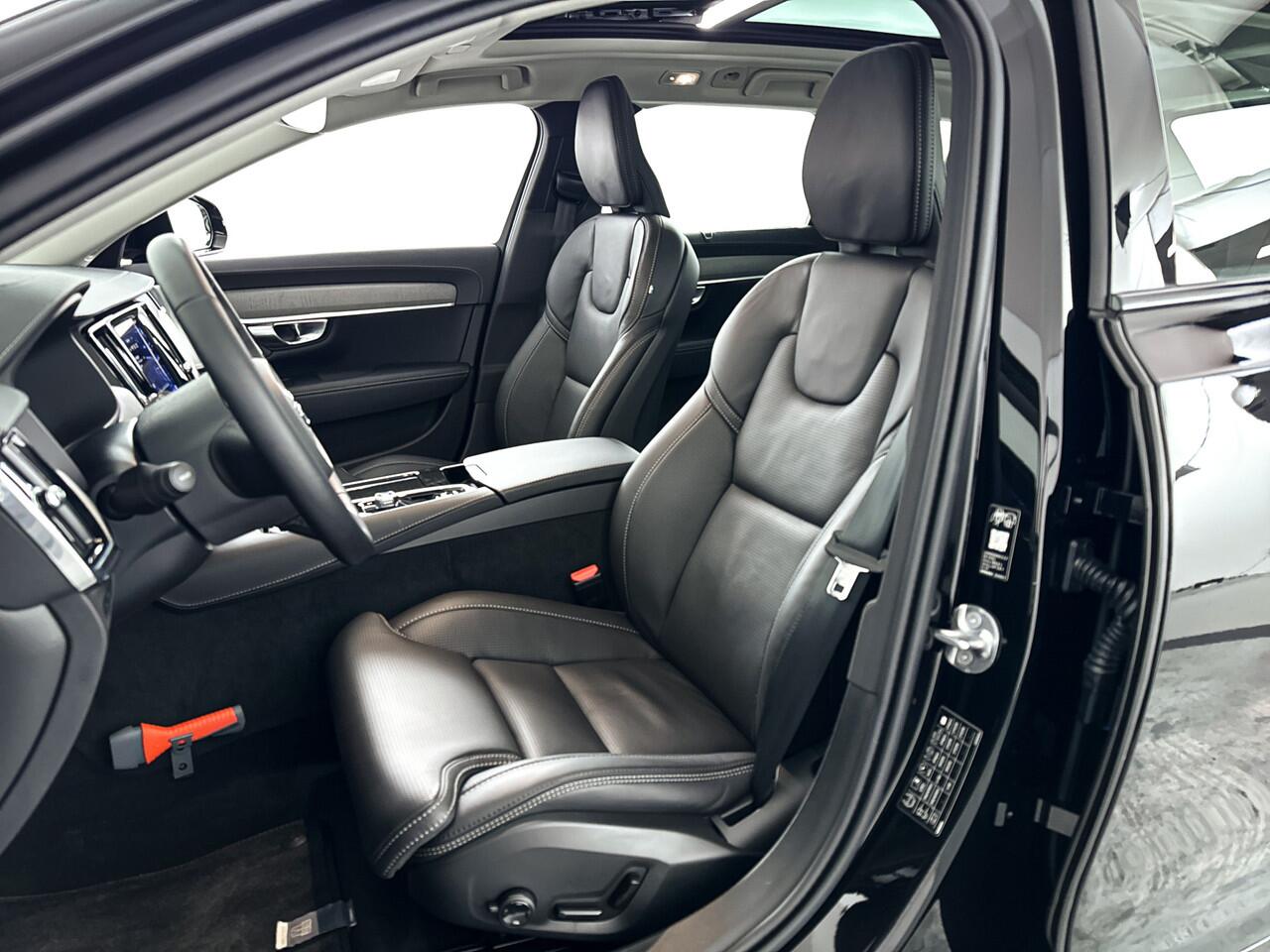 comfortabele interieur en uitstekende rijkwaliteiten is deze Volvo V90 een goede keus voor liefhebbers van Zweeds design. De krachtige benzinemotor staat garant voor uitstekende prestaties. De ruime lichtinval door het elektrisch bediende glazen panorama dak zorgt voor een heerlijk ruim gevoel. Met één klik te openen voor frisse lucht en een mild windje in de auto. Dat is gemak en plezier! Overigens is het happy-klik gevoel ook aanwezig bij de elektrisch bedienbare achterklep. Neem plaats op de comfortabele stoelen. Dankzij de elektrische bediening en het geheugen is het eenvoudig om hierin de beste zitpositie te vinden. Bij de zeer complete uitrusting van deze auto behoren ook 19 inch lichtmetalen velgen