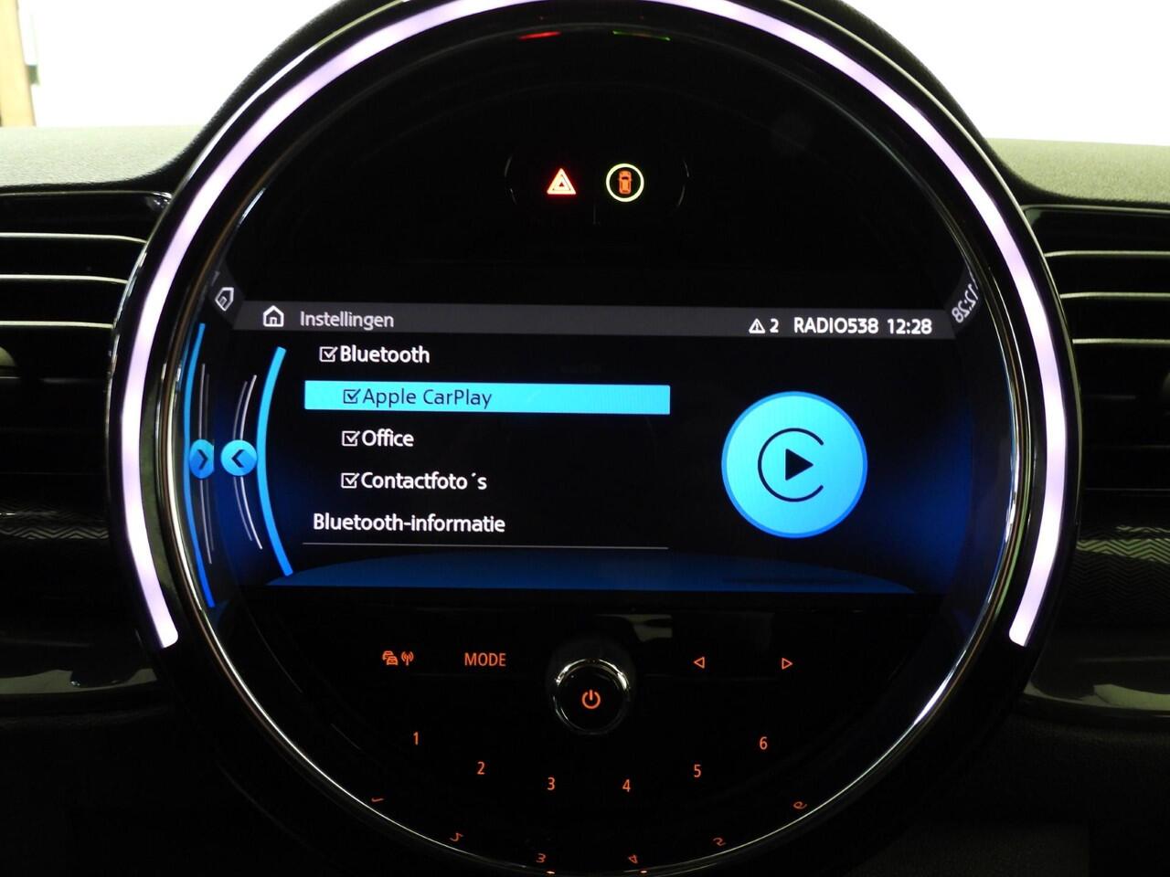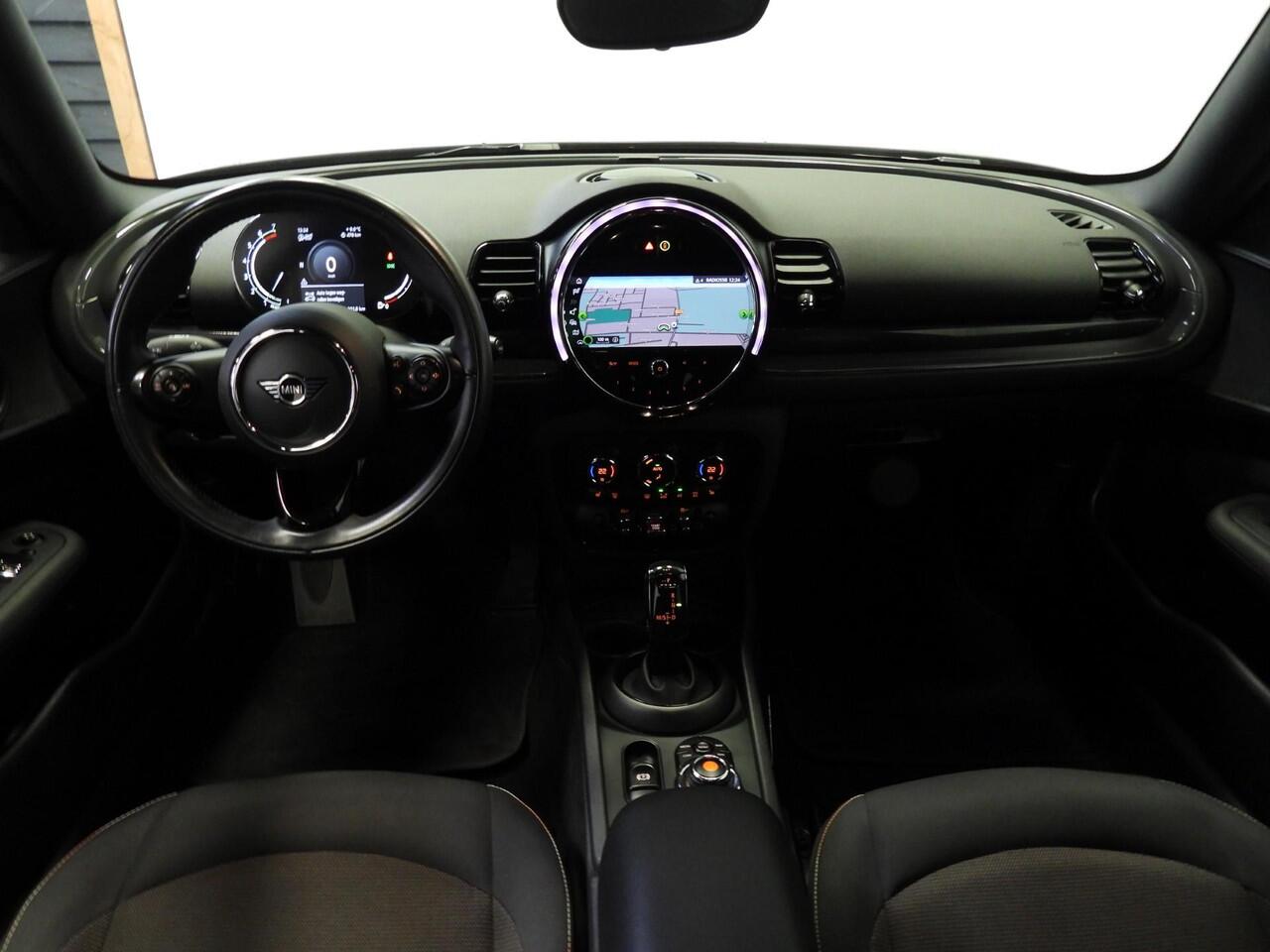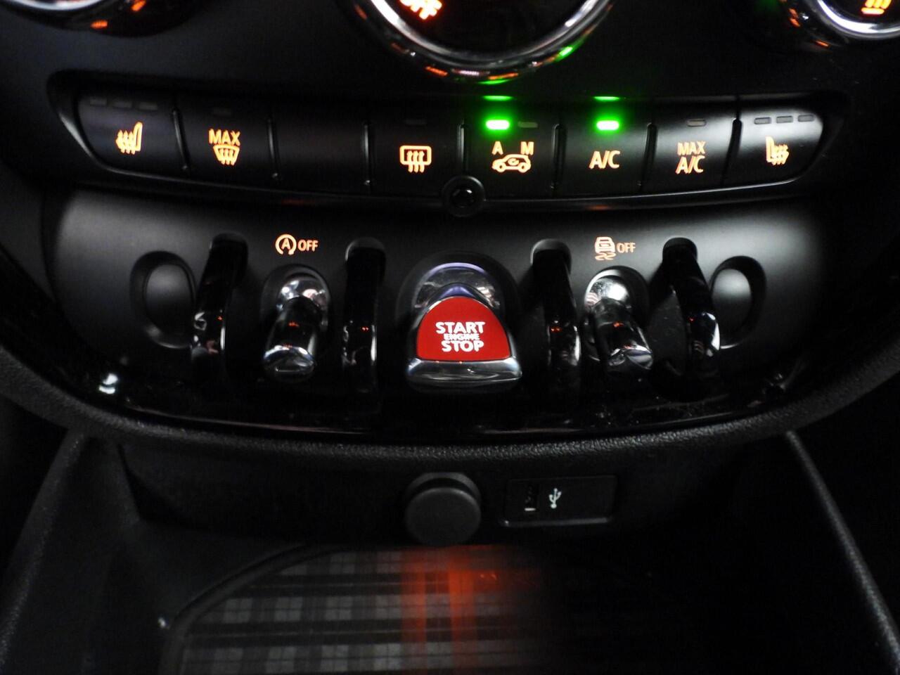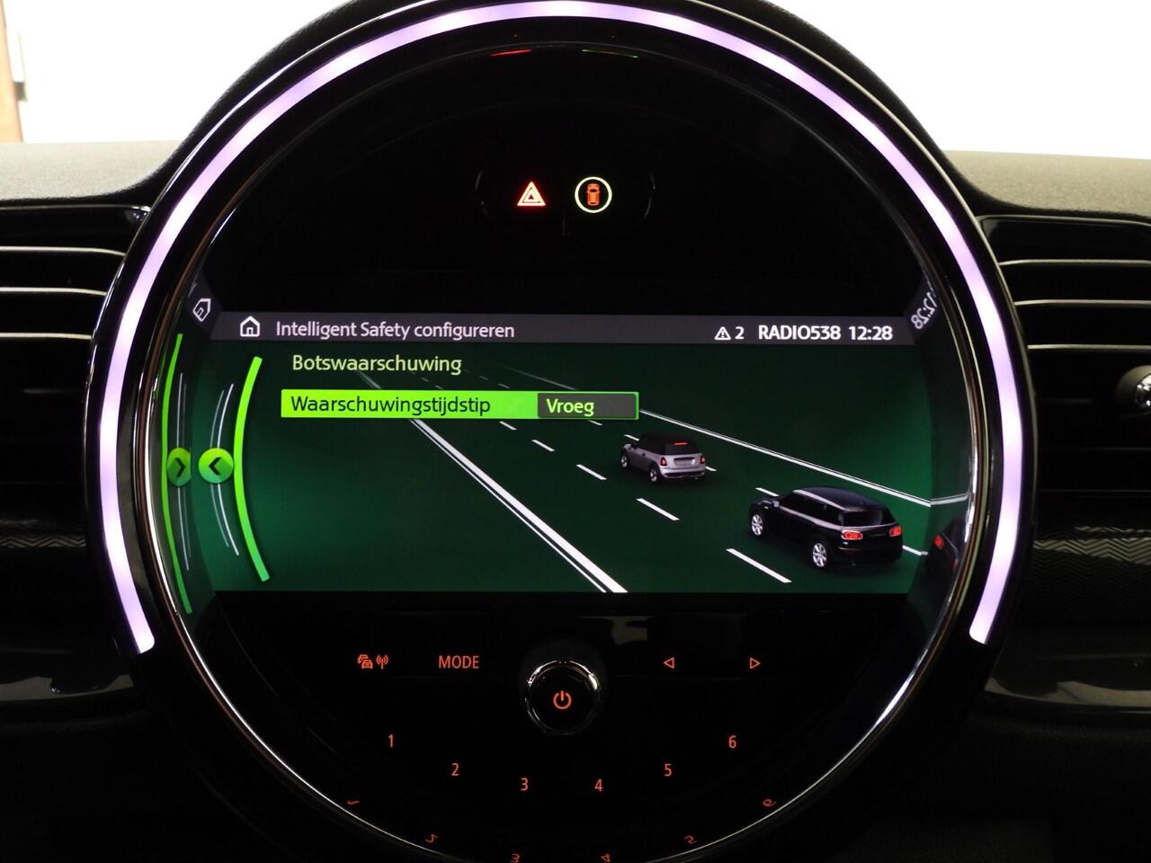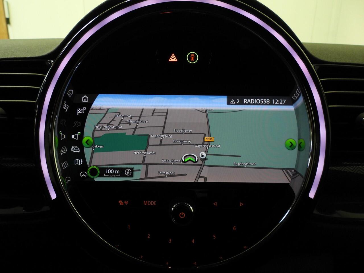 dankzij het full map navigatiesysteem. De achteropkomend verkeer waarschuwing geeft een signaal als degene achter u te dicht op u zit. Ook handig en veilig bij het wisselen van rijbaan. De climate control zorgt voor een prettige binnentemperatuur. Het audiosysteem bedient u blind met behulp van de audiobesturing op het stuur. Veilig en praktisch! De Mini is standaard voorzien van: DAB ontvangst