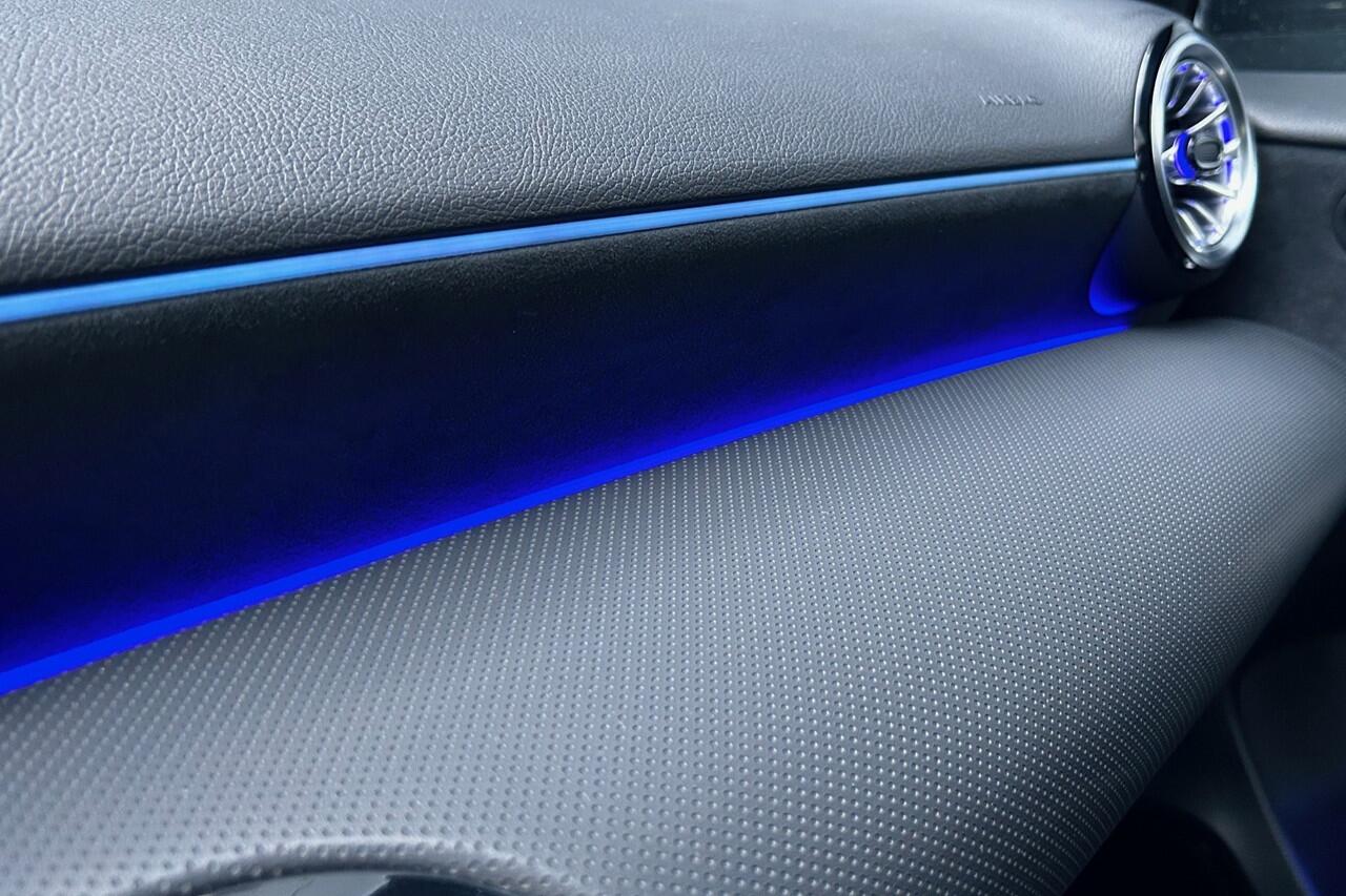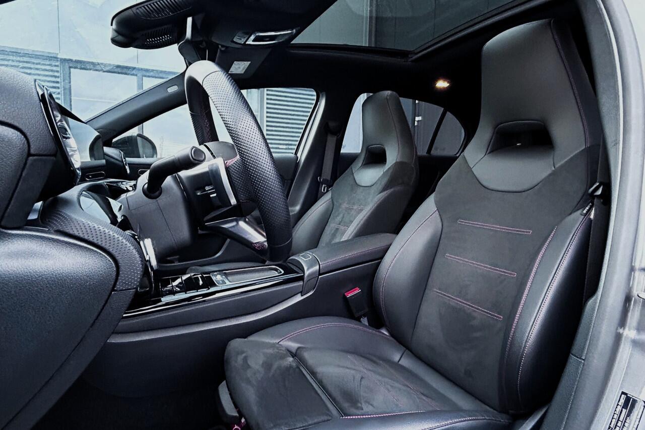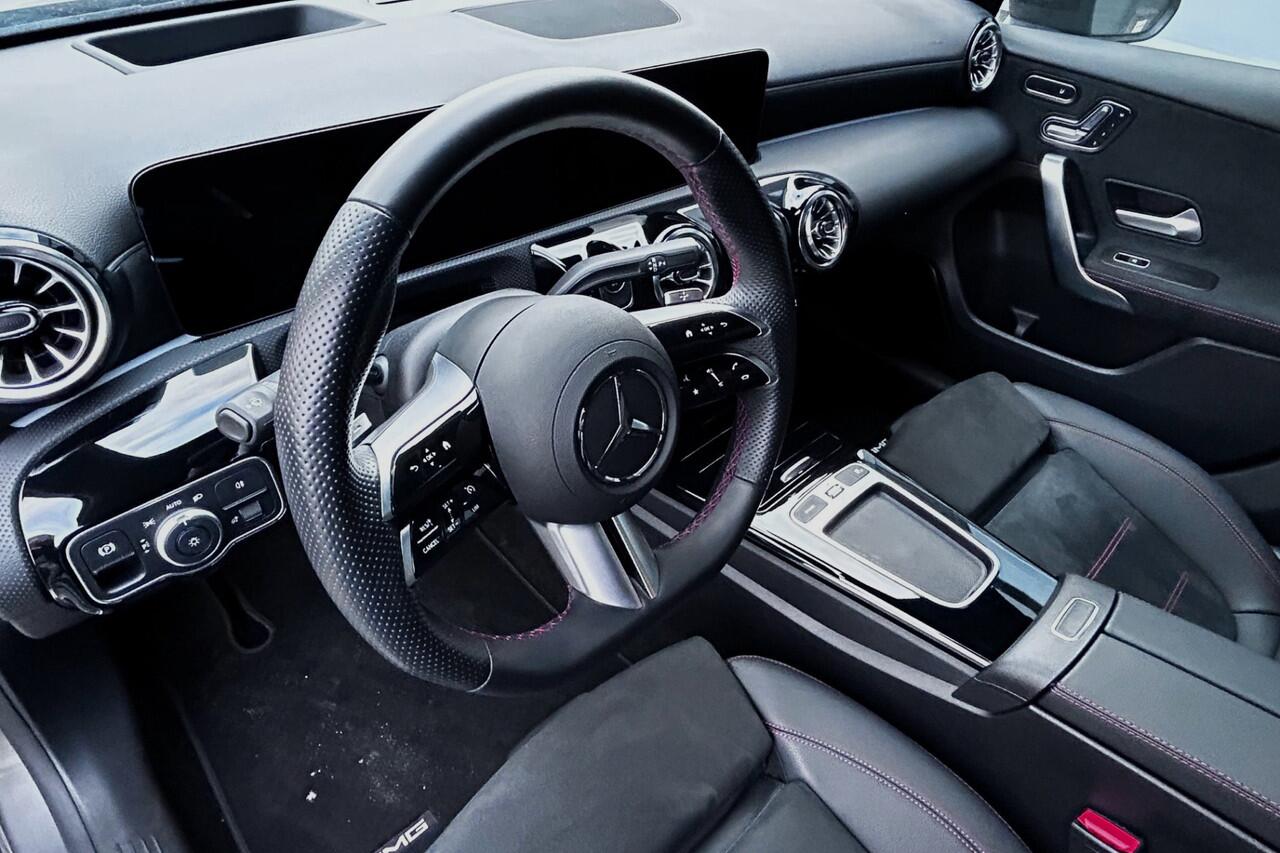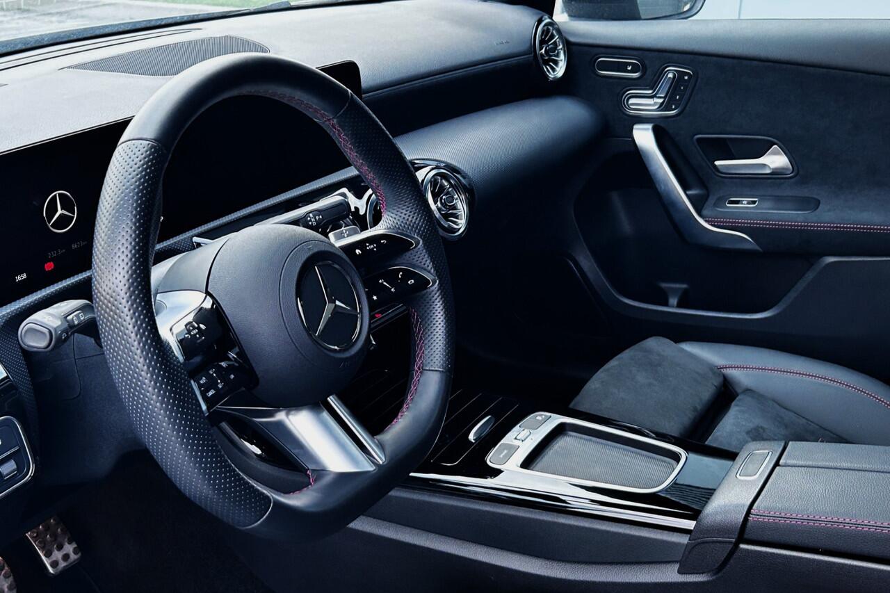 sportieve en zeer complete Mercedes Benz A250e AMG Line Plus met slechts 8623km! Deze zuinige en 218pk sterke hybride A-klasse is o.a. voorzien van het AMG Line interieur en exterieur (sportstoelen met lederen/alcantara bekleding