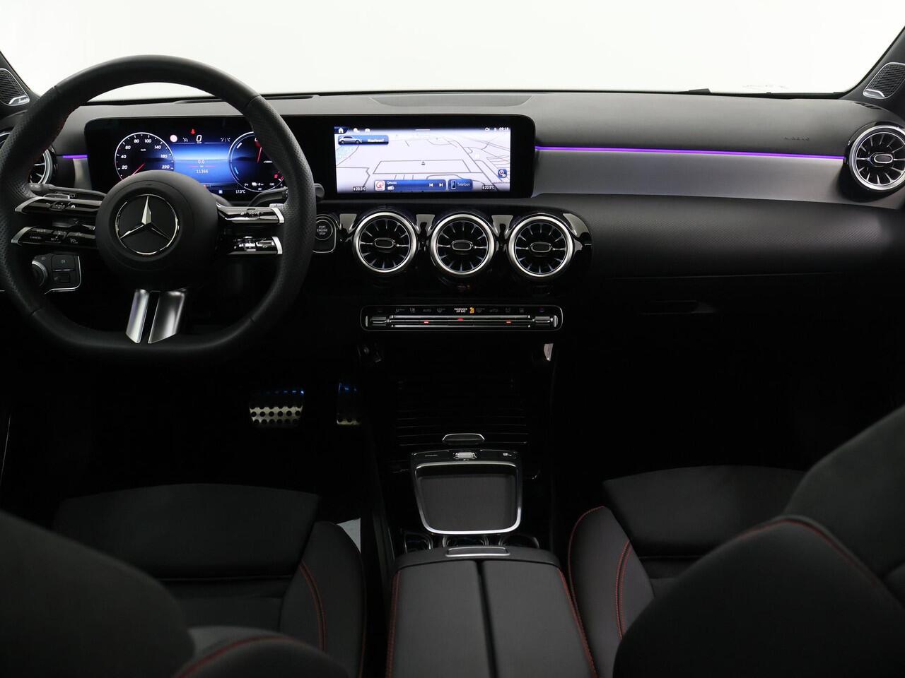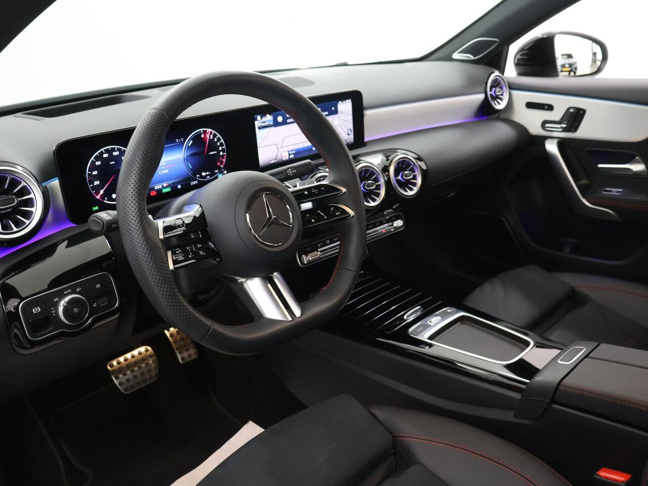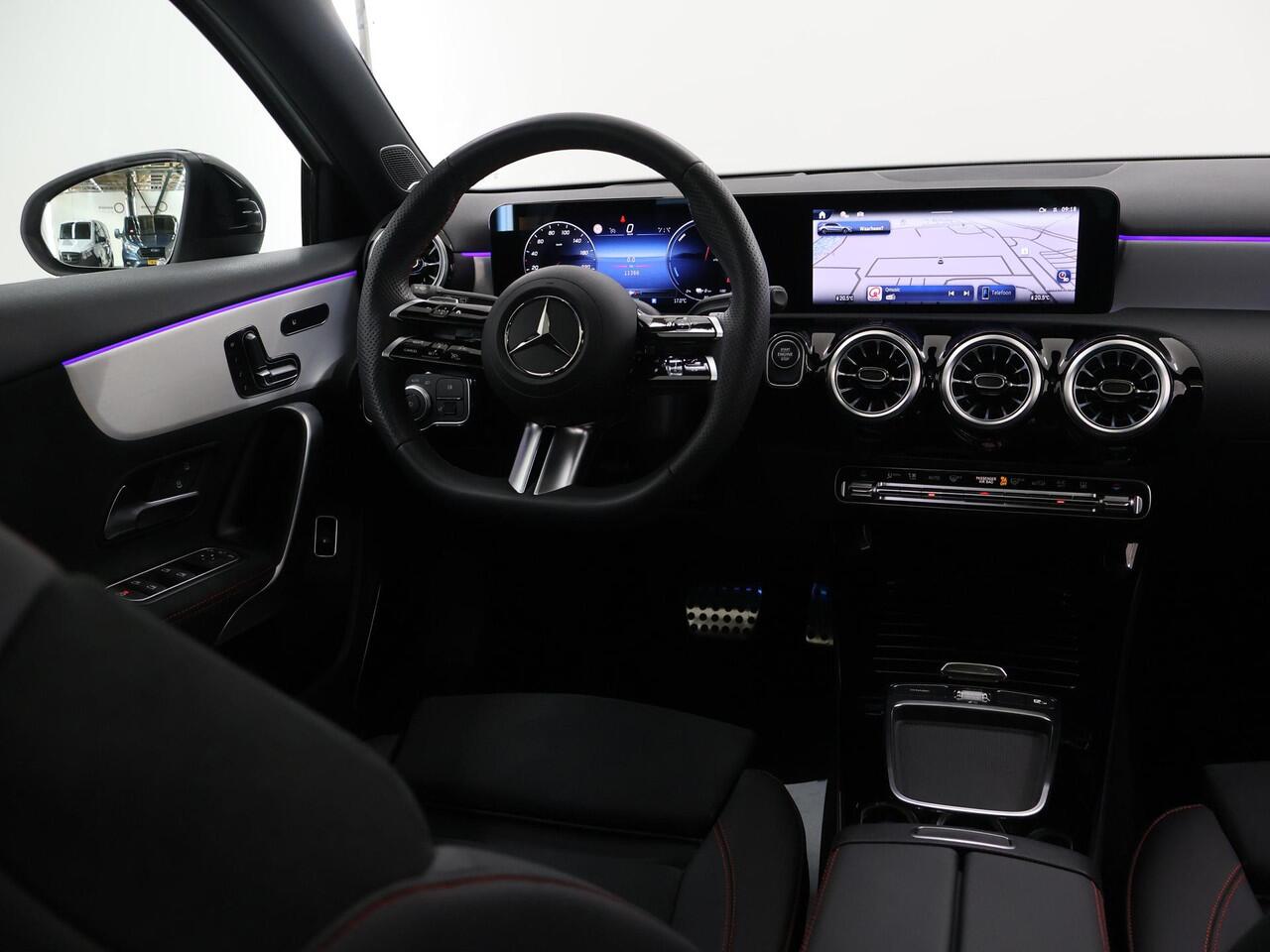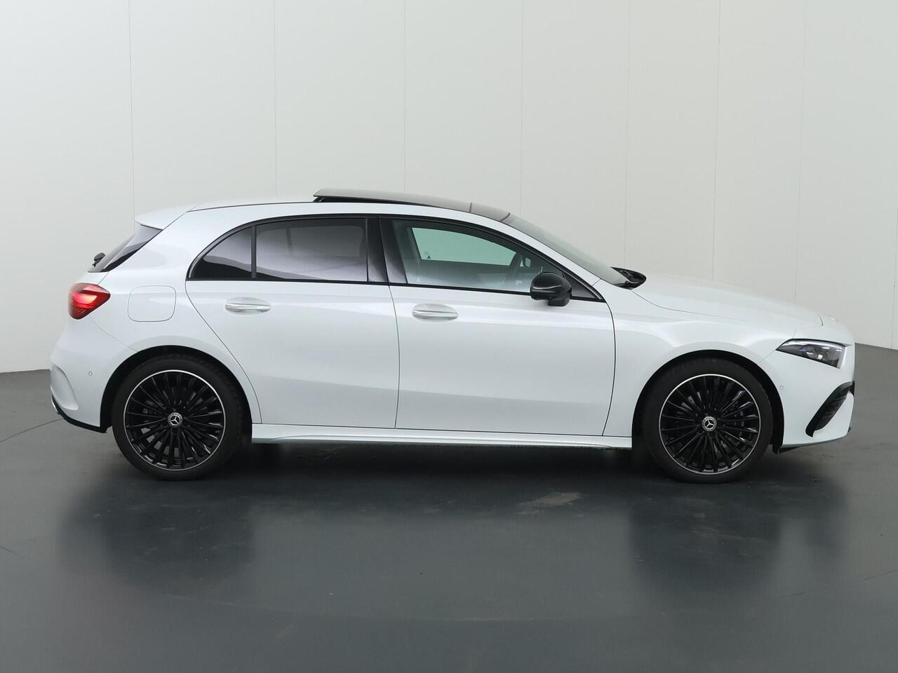met een tellerstand van slechts 11363 kilometer. Met deze hybride Mercedes-Benz A-klasse ben je niet voor één gat te vangen. Je kan kiezen voor elektrisch rijden of benzine. Met de voordelen van allebei. Dankzij de elektrische stoelbediening is het gemakkelijk om de optimale zitpositie te vinden. Van binnen lijkt het allemaal uitermate ruim dankzij de vrije inval van daglicht via het elektrisch bediende glazen panoramadak. Voorzien van matrix LED-verlichting. De auto dimt precies dat deel van de lichtstraal waar de voor- of tegenliggers in rijden. De overige segmenten blijven aan en verlichten de weg. Bij de uitrusting van deze auto horen onder meer 19 inch lichtmetalen velgen